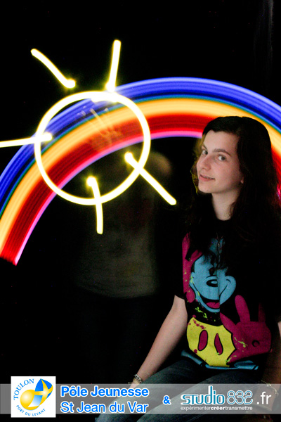 Les adolescents du Collège Voltaire ont pu s’initier aux techniques du Light Painting, et réaliser en binômes leurs propres dessins de lumières : une première pour la jeunesse toulonnaise ! Cette action a pour but de préparer les activités de l’année scolaire 2010/2011, et nous tenons à remercier chacun pour son implication dans cette journée découverte. Le directeur du Pôle Jeunesse de St Jean du Var, M Reiza Guenifi, souhaite développer les activités pédagogiques innovantes, et ce premier partenariat semble déjà porter ses fruits…