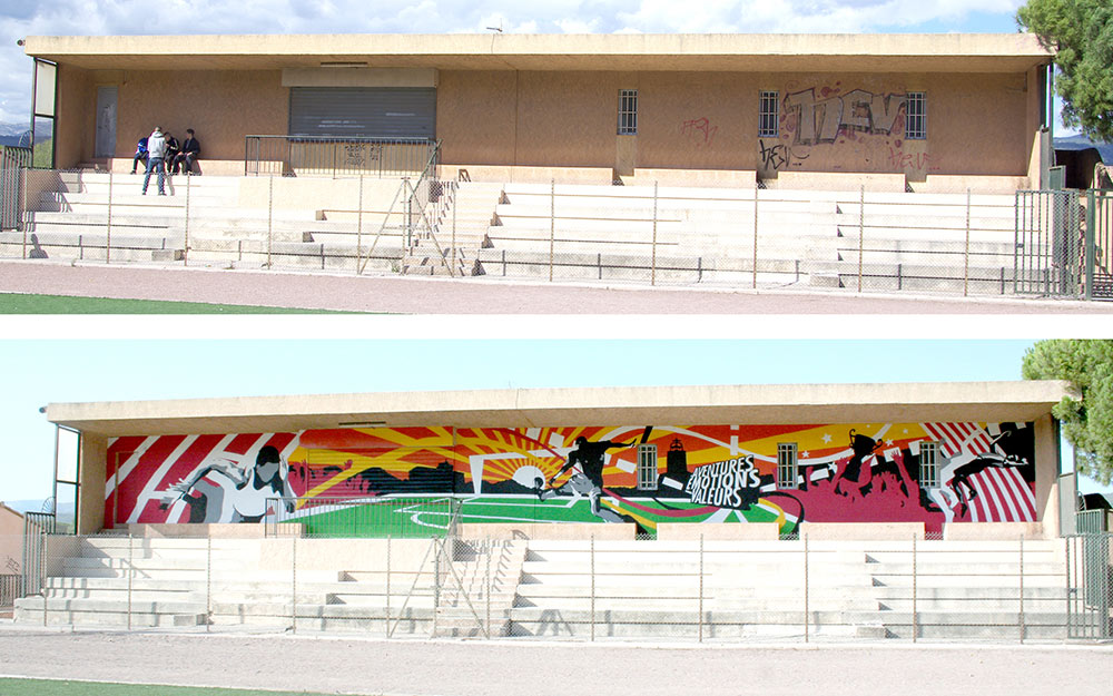Communiquer autrement correspond à vos objectifs de gagner en visibilité sur site. La fresque permet de se positionner finement en offrant une œuvre d’Art communicante à votre environnement, sans que cela soit perçu comme de la publicité (pollution visuelle).
